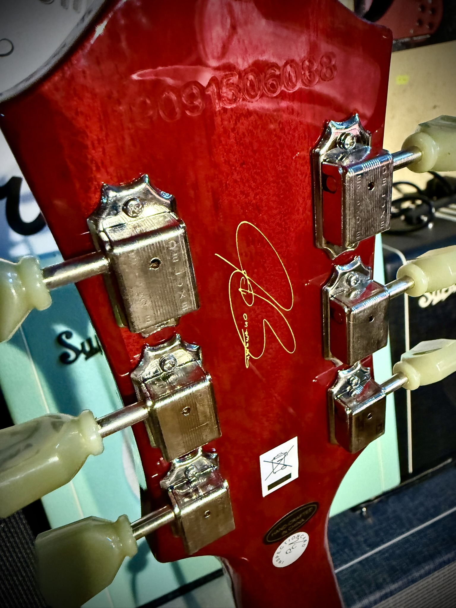 Joe Bonamassa signature on rear of headstock