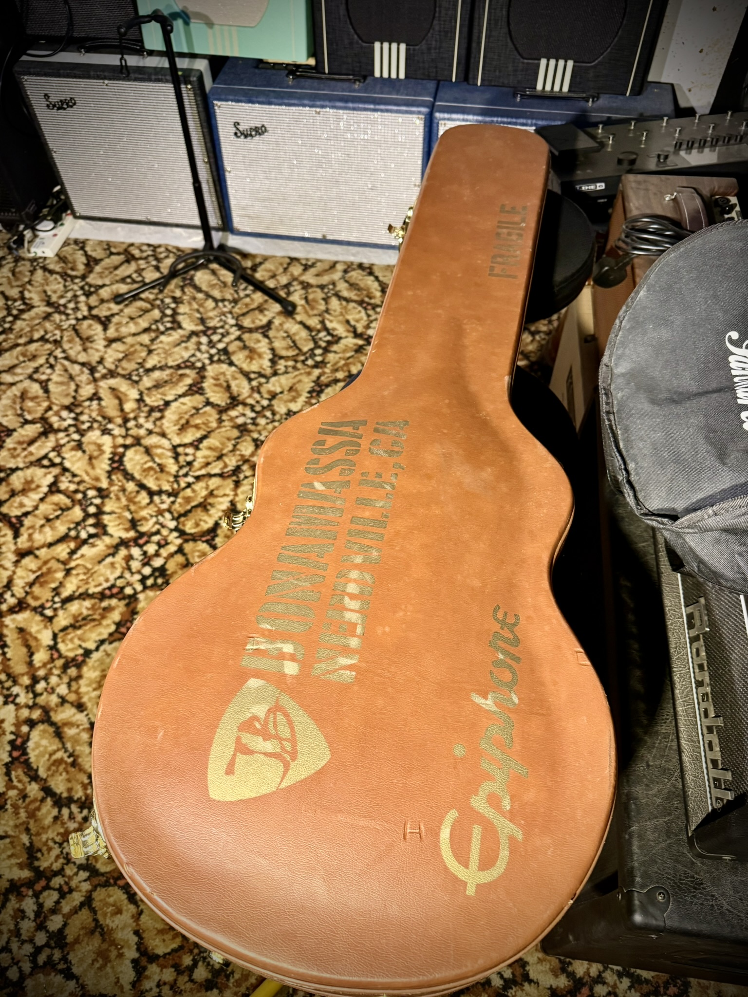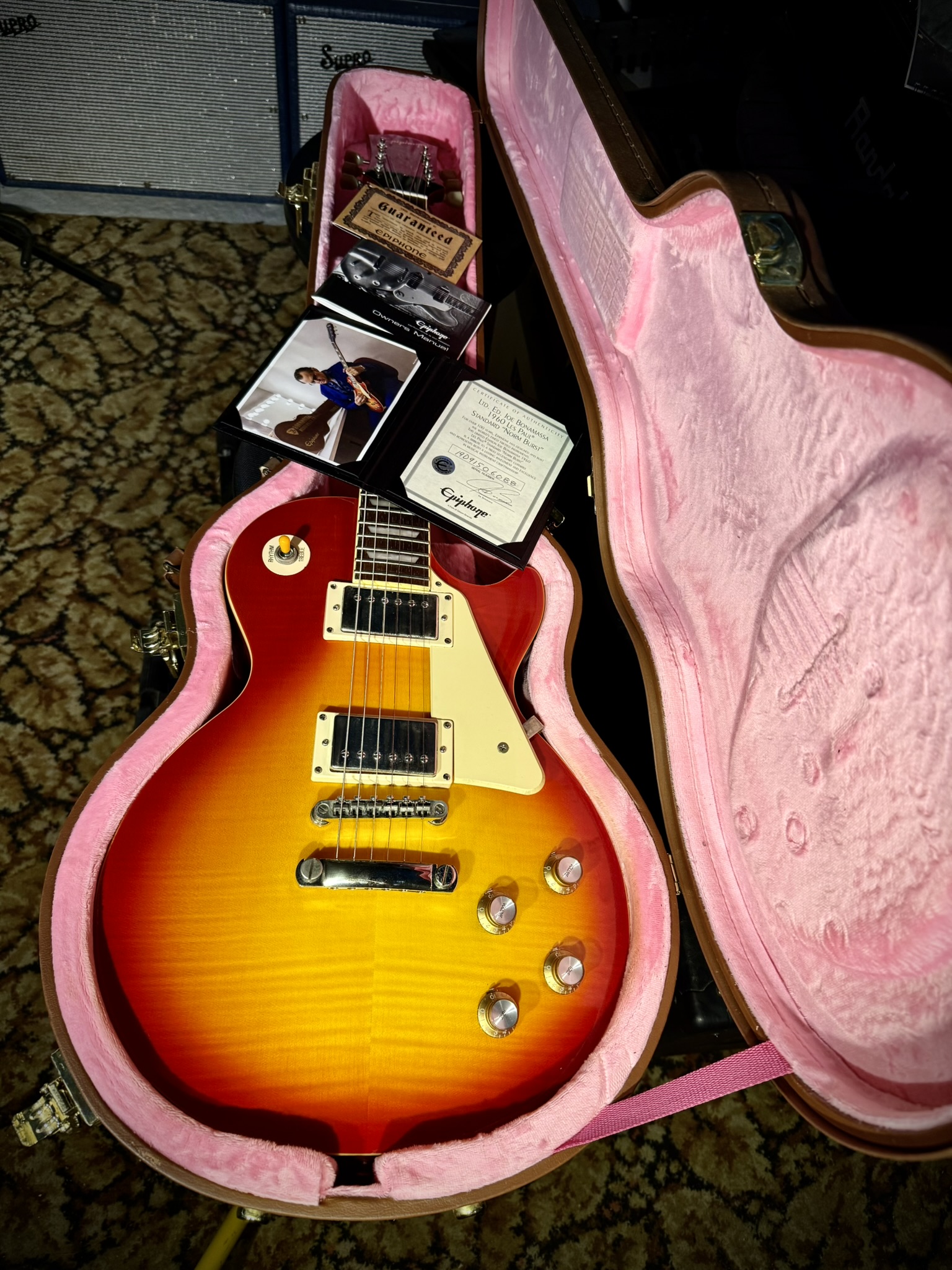 The guitar also includes a vintage-style Lifton hardshell case with Nerdville graphics and a certificate of authenticity personally signed by Joe Bonamassa, making it highly desirable for collectors and fans of the artist.